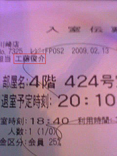 あ~~、カラオケ館の受付の人の名前が・・・